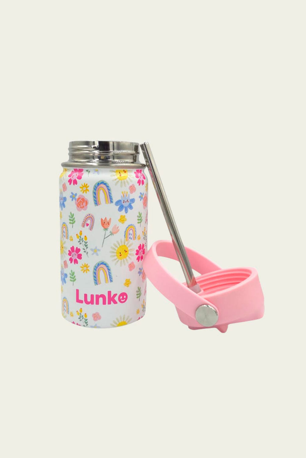 La Botella 350 ML Arcoíris alegra cada sorbo con su diseño lleno de colores vibrantes que representan la energía, la felicidad y la diversión de la infancia. Su exterior brillante y optimista invita a los niños a hidratarse con alegría en cualquier momento del día. Fabricada con interior de acero inoxidable, mantiene las bebidas frescas y sin alterar su sabor ni olor. Con una capacidad ideal de 350 ml, es perfecta para las manos pequeñas y para llevar la cantidad justa de agua, jugo o leche a la escuela o las actividades diarias. Su tapa hermética evita derrames y su tamaño compacto permite guardarla fácilmente en mochilas o loncheras. Además, es reutilizable, fácil de limpiar y fomenta el cuidado del planeta al reducir el uso de botellas plásticas, inculcando hábitos sostenibles desde la niñez.